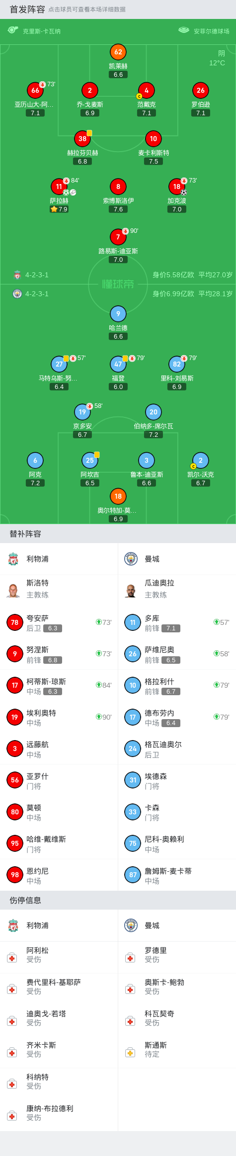 随着比赛的进行,利物浦队员们展现出了出色的配合和默契,不断制造威胁机会。范戴克在比赛中多次展现出他在空中的优势,不断利用头球攻门,给曼城的防线制造威胁。但是,在上半场的比赛里,曼城的防守表现仍然坚挺,没有再失分。